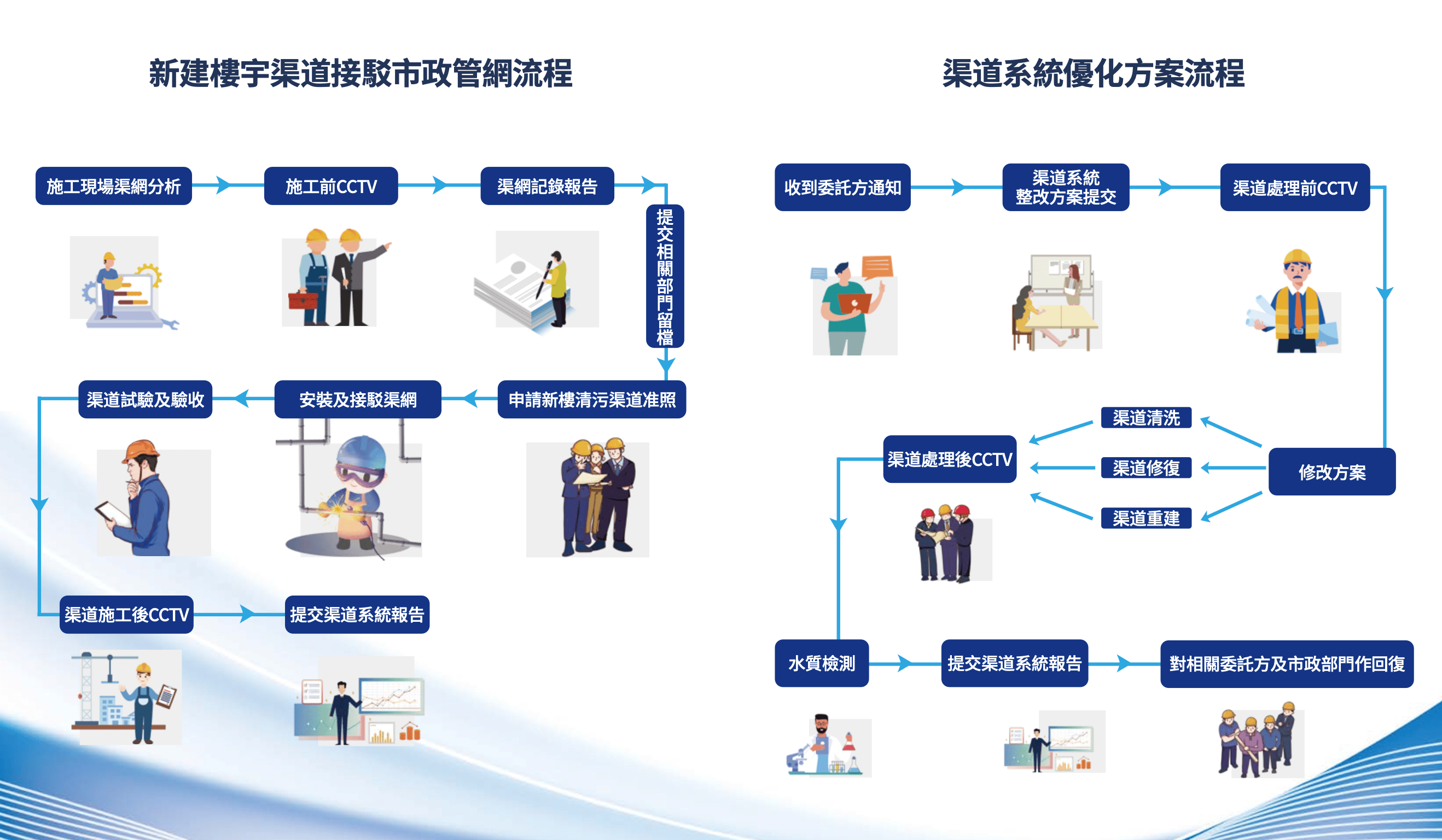 於澳門特別行政區註冊成立,專注市政渠道的檢測及修復工作,公司成立迄今,經歷由小到大,從傳統手工操作發展到機械現代智能化。公司專業團隊超過50人,擁有各項専業證書。